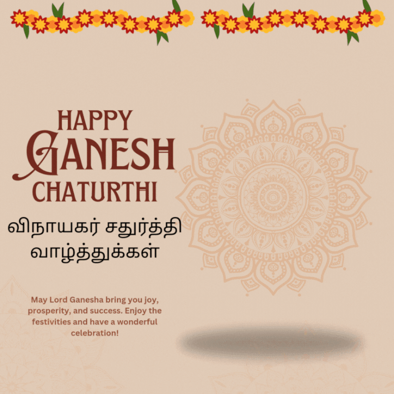 உங்களுக்கும் உங்கள் குடும்பத்தினருக்கும் பக்தி, மகிழ்ச்சி, சிரிப்பு மற்றும் ஒன்றாக இருக்கும் இனிமையான தருணங்கள் நிறைந்த விநாயகர் சதுர்த்தி வாழ்த்துக்கள்